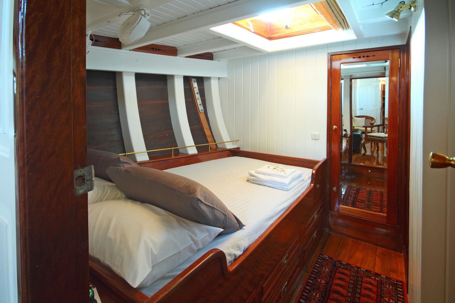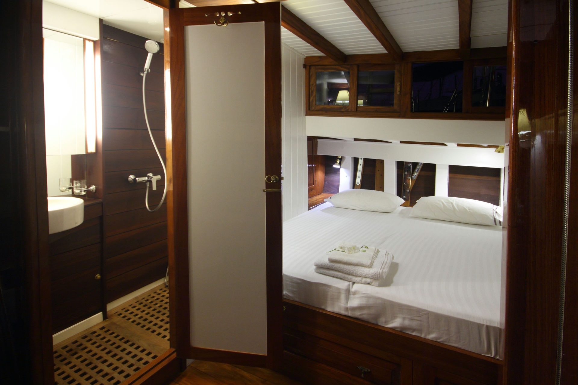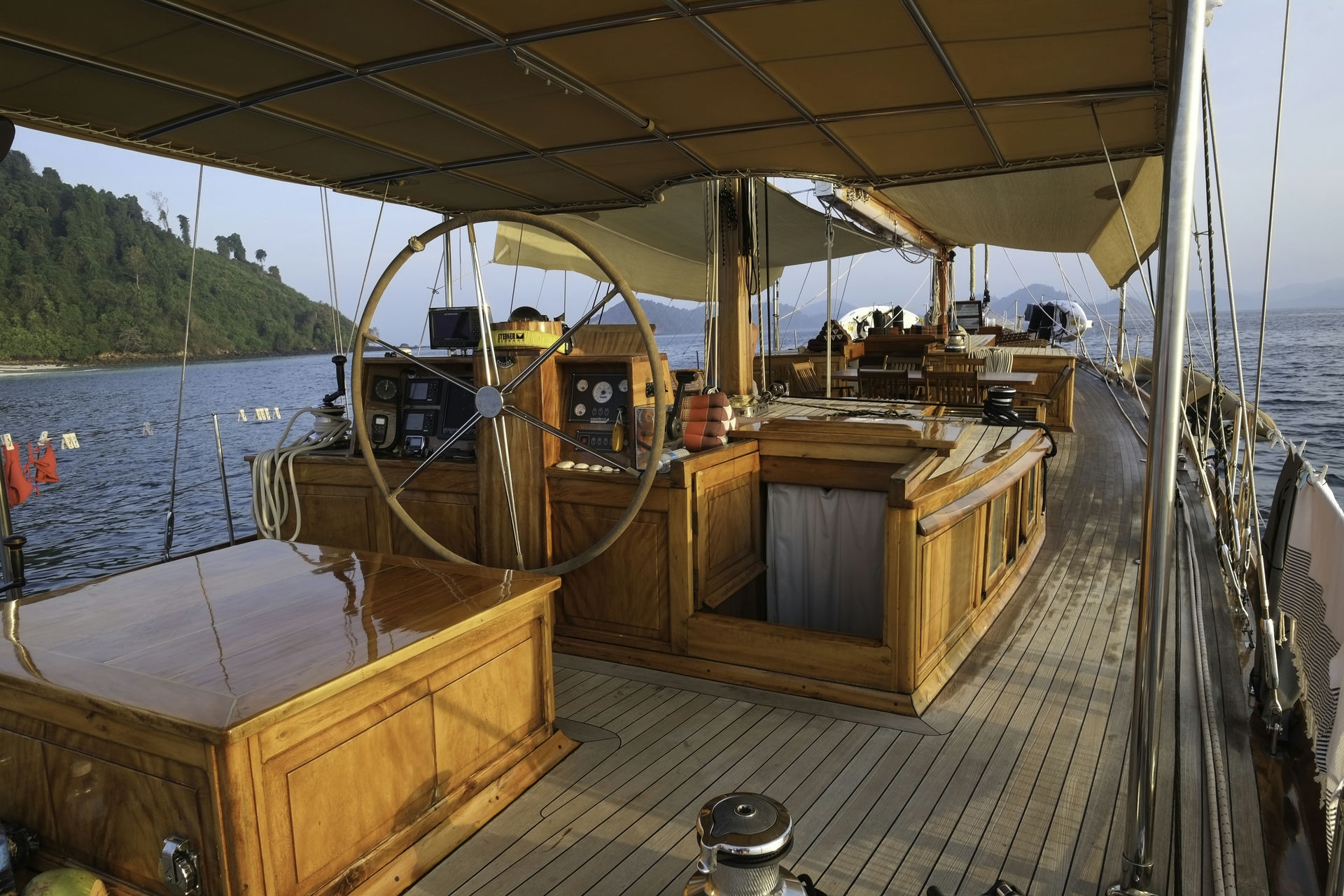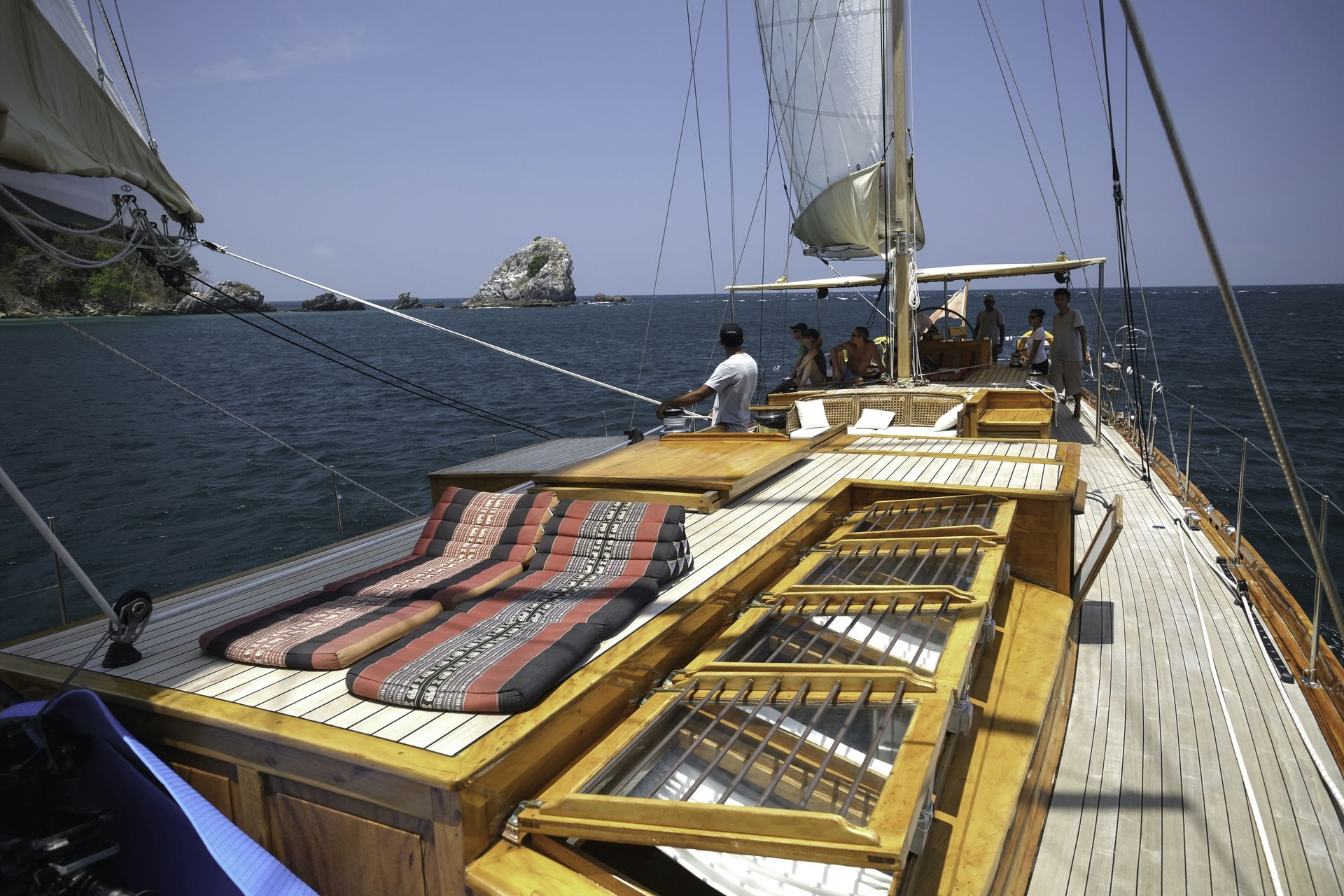 Step aboard our exquisite Classic Ketch, a 29-meter masterpiece crafted in 2011 by shipbuilder Patrick Balta. Accommodating up to seven guests in three double cabins and one single cabin, this beautifully renovated vessel is ready to take you on a journey between Myanmar’s Mergui Archipelago and Phuket, Thailand.