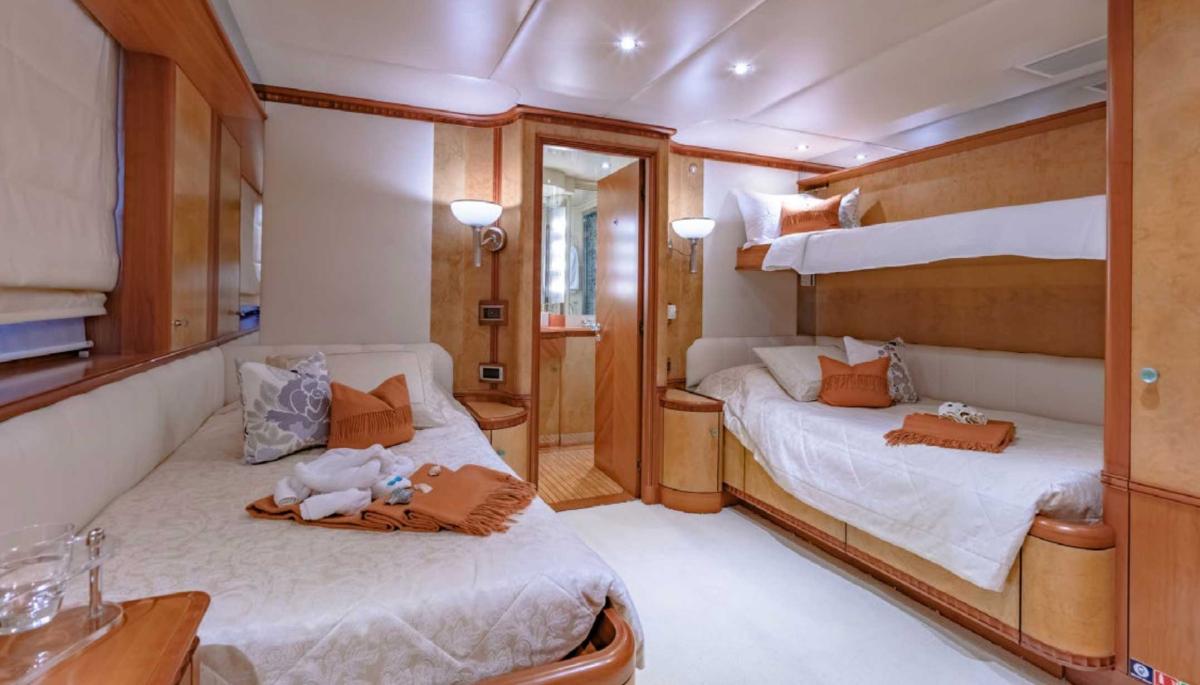 Built by CRN in 1996, this yacht’s classic Italian style is a testament to the design prowess of Paolo Scanu. Constructed with a robust blend of steel and aluminum, she meets RINA classification and MCA compliance standards, ensuring both durability and safety. Following an extensive two-year rebuild completed in 2015—which included new teak decking, technical upgrades, and a complete exterior repaint—the yacht earned a judges’ commendation for Achievement in the Rebuilt Yacht category at the 2016 World Superyacht Awards.