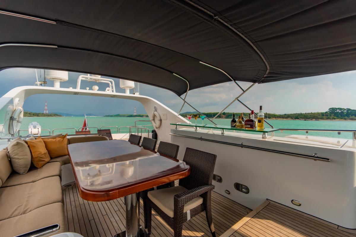 The heart of the yacht is the sundeck, where an inviting outdoor dining area, a jacuzzi, and a bar with a high-tech sound system await. This area is ideal for lively entertainment or simply unwinding with soothing music as you take in the sea views. Every element on board has been thoughtfully designed to provide an unparalleled experience, making your time on the Bilgin Yacht truly memorable.