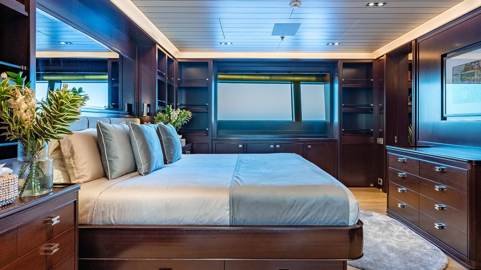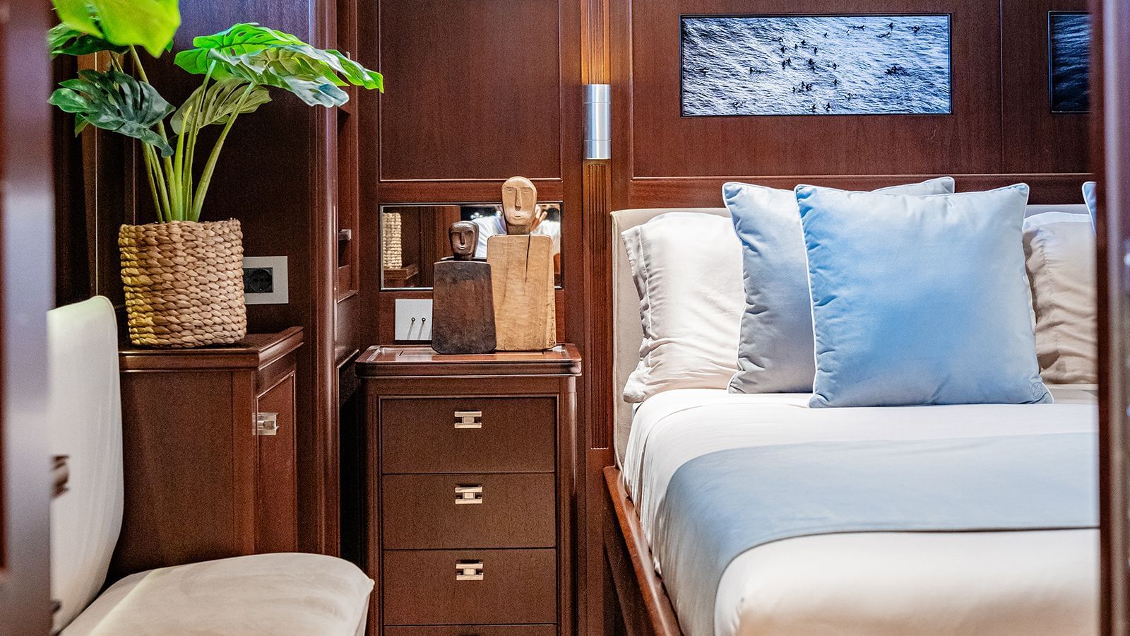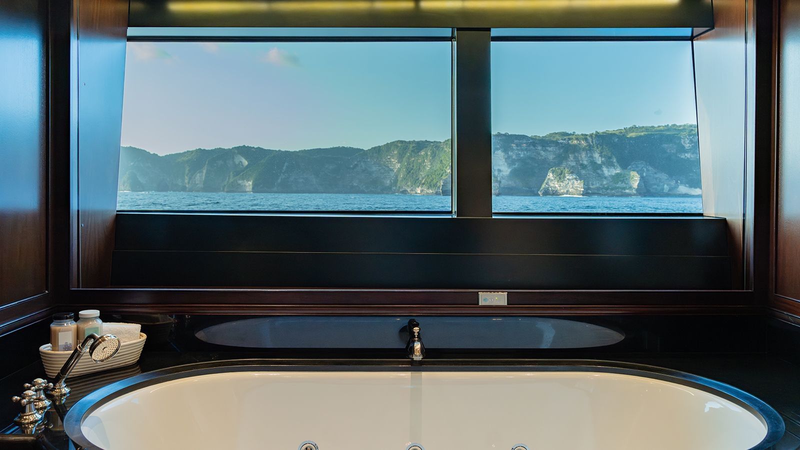 The award-winning yacht features a traditional interior with a modern twist, blending neutral tones with Indonesian influences. Spacious and light-filled interiors are designed for a silent cruise experience, complemented by eco-conscious onboard practices, such as sustainably sourced products and hybrid propulsion. Accommodating up to 12 guests across five ensuite cabins, with additional accommodation for a crew of 11, GALILEO ensures impeccable service tailored to each guest’s needs.