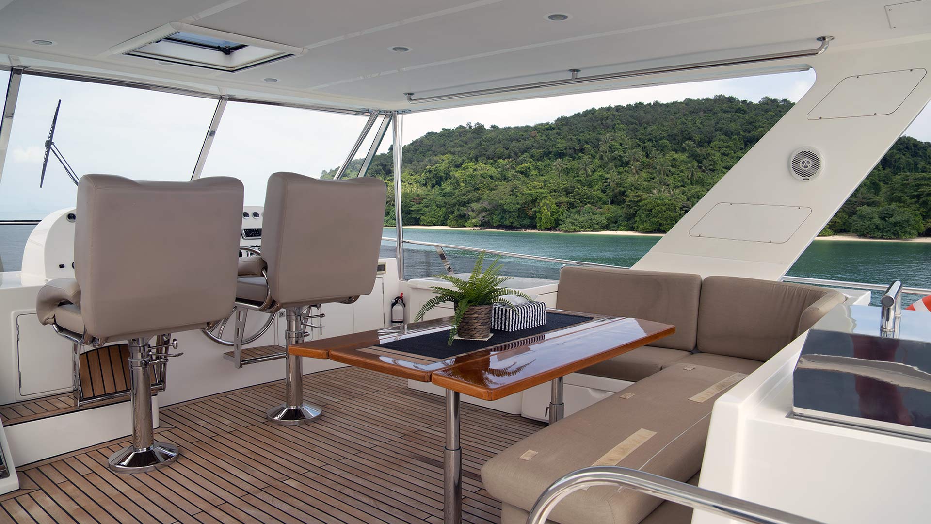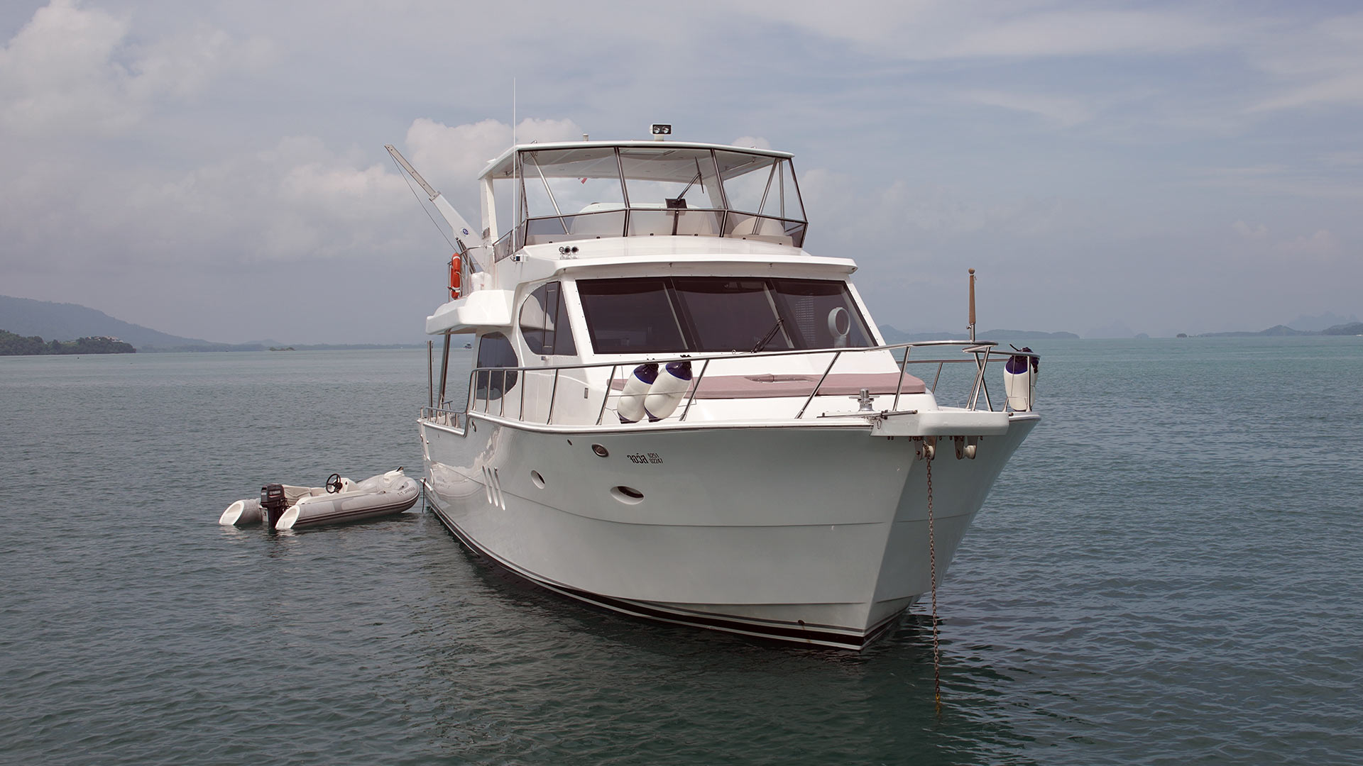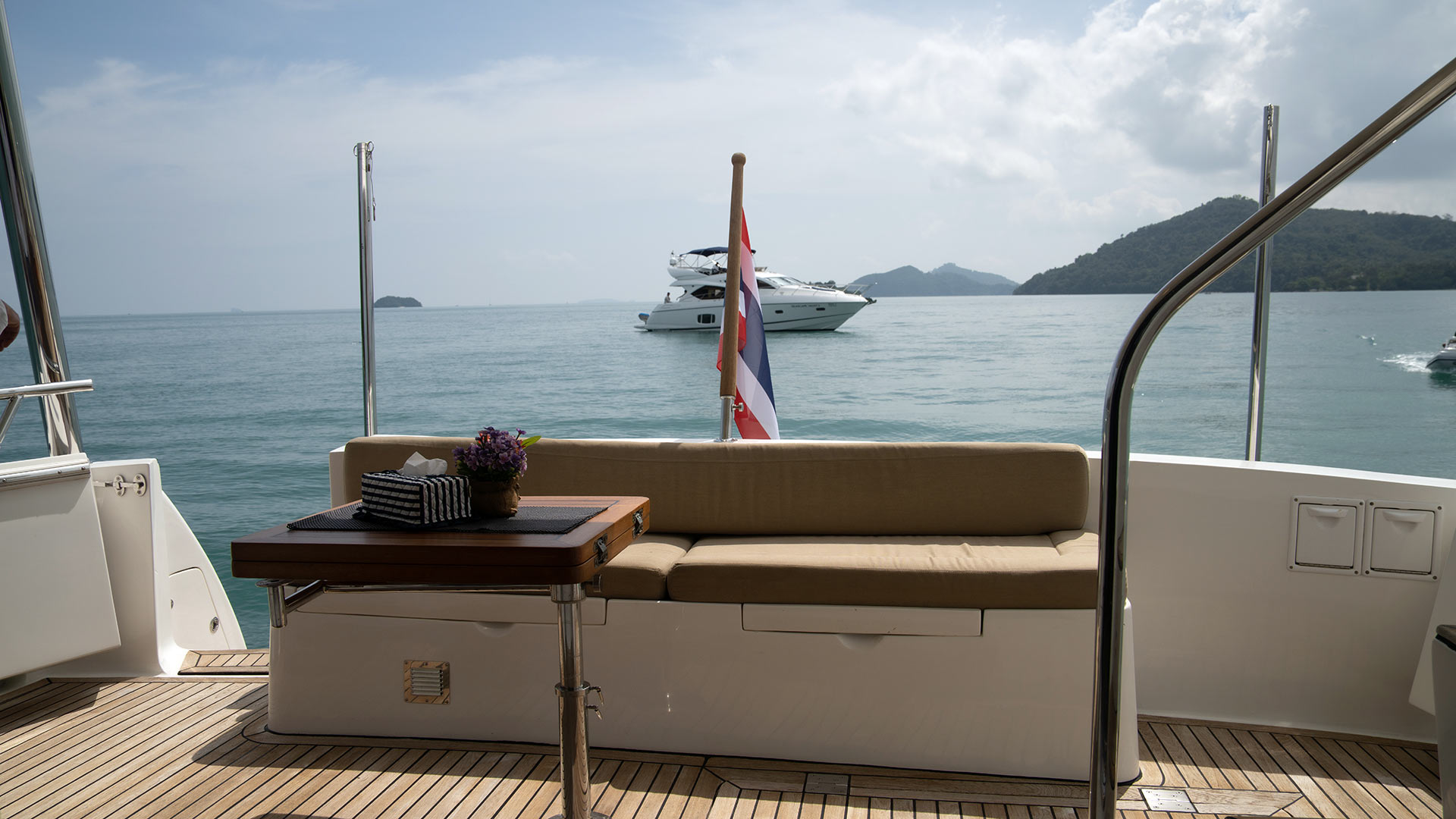 This ACTIVA 5800 from 2013 is the ideal family cruiser for exploring the Andaman Sea. Powered by twin John Deere engines, she reaches a maximum speed of 15 knots and cruises comfortably at 12 knots.