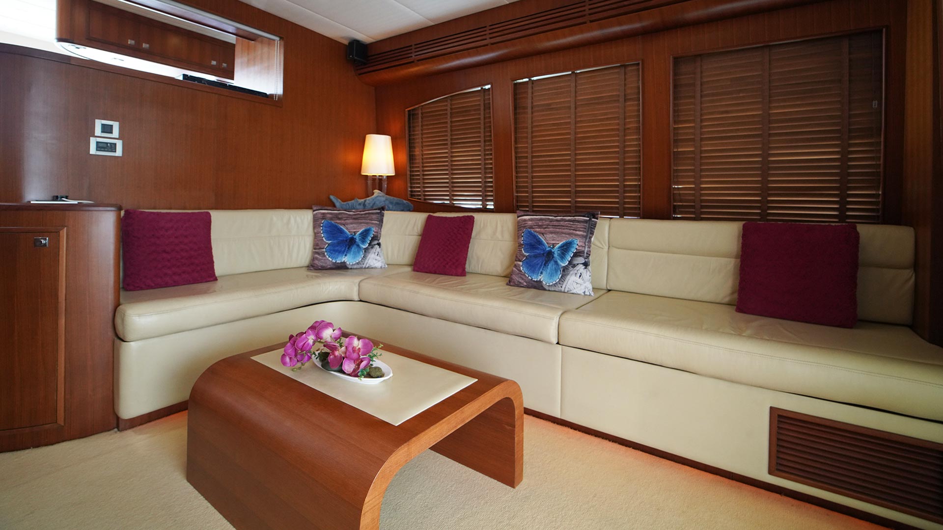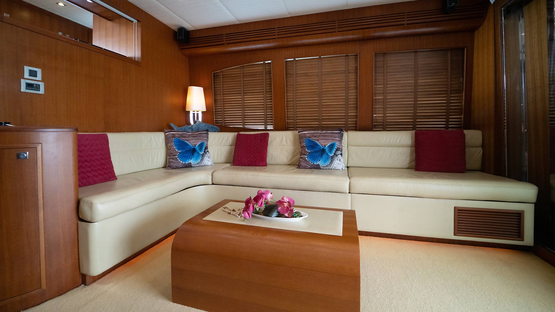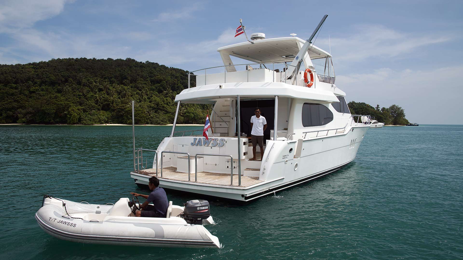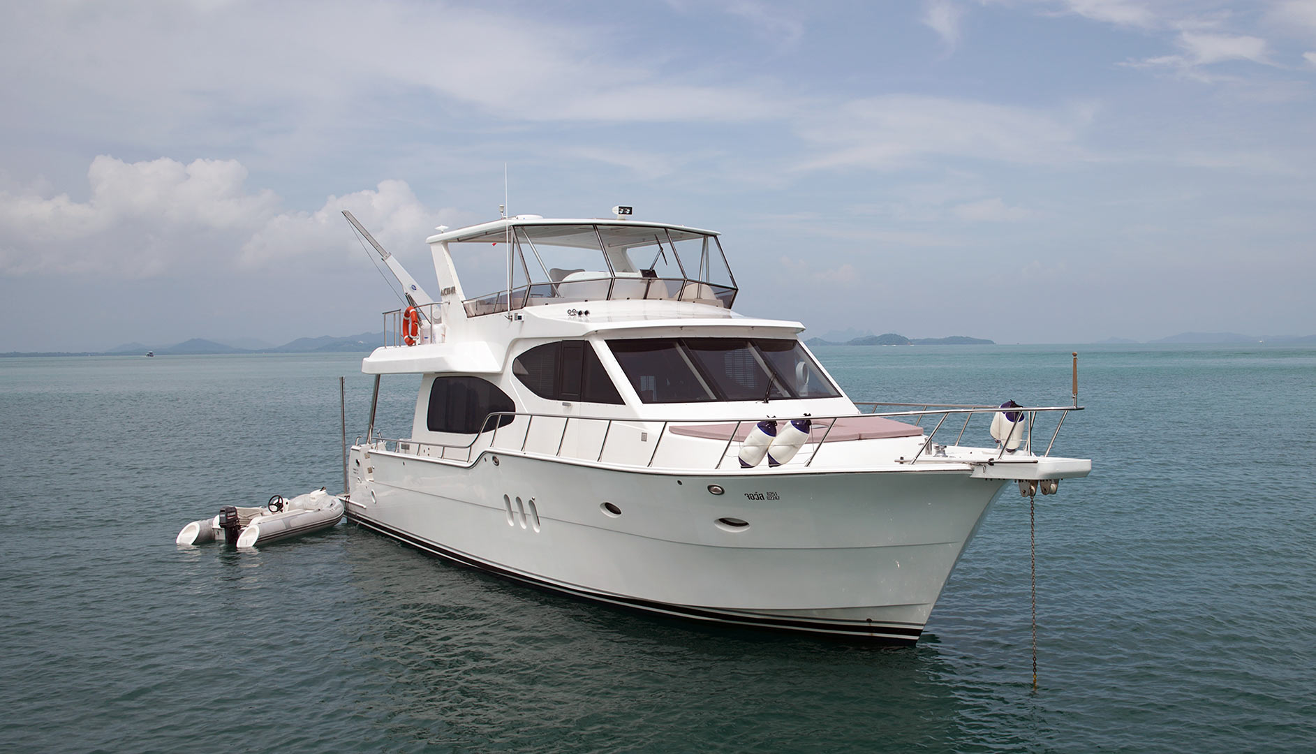 This ACTIVA 5800 from 2013 is the ideal family cruiser for exploring the Andaman Sea. Powered by twin John Deere engines, she reaches a maximum speed of 15 knots and cruises comfortably at 12 knots.