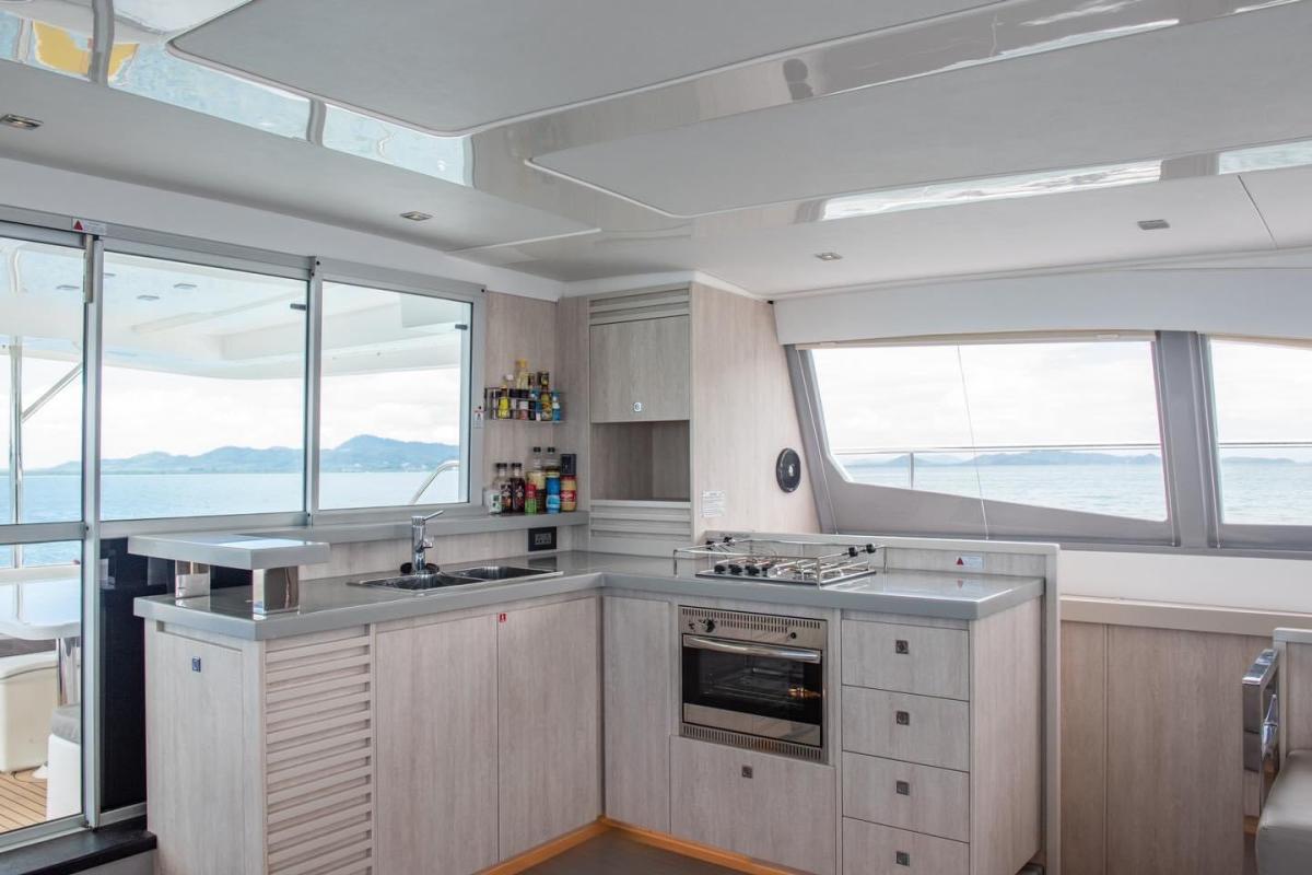 One of the newest additions to our fleet, the 16-meter Leopard 51ft Motor Power Catamaran (built in 2016), combines sleek design with luxurious comfort. This beautiful motor catamaran features a large forward cockpit, additional lounging areas, an expansive flybridge, and a spacious interior with modern appliances, making it perfect for both day cruises and extended adventures. The Leopard 51ft can accommodate up to 20 passengers for day trips and six guests for overnight charters.