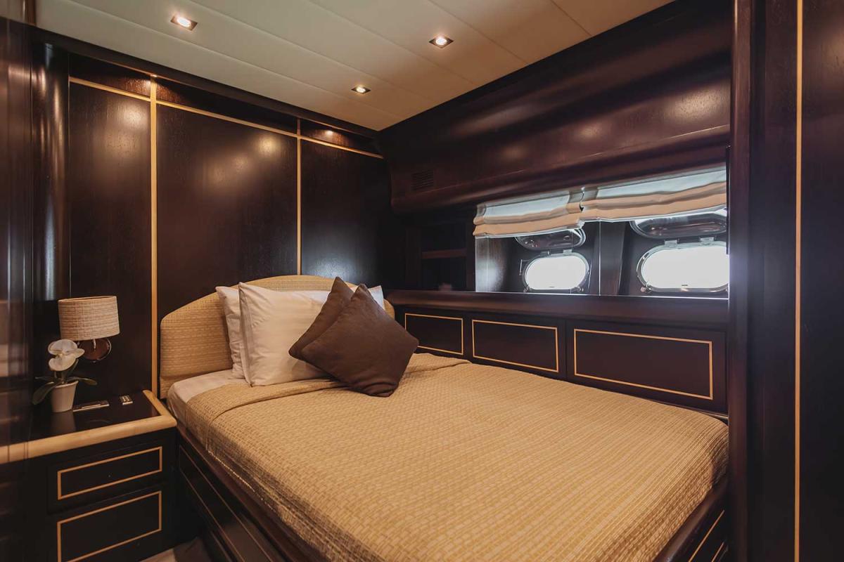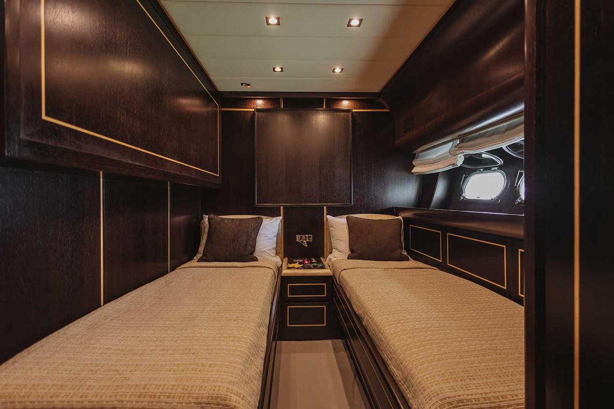 The Leopard V90 Sport, built in 2003 and fully refitted in 2021, exemplifies remarkable craftsmanship and sophistication. This sleek vessel comfortably accommodates up to 16 guests, cruising smoothly at 25-30 knots and reaching exhilarating speeds of up to 40 knots. Inside, you’ll find a spacious saloon, three refined cabins, and four bathrooms, each equipped with air conditioning for optimal comfort.