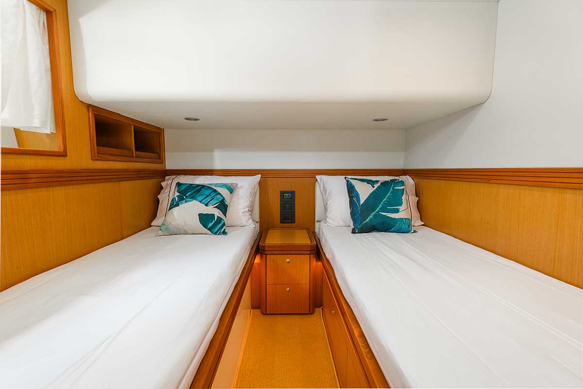 The Maestro 51ft is ideal for outdoor enthusiasts as well as those seeking privacy and tranquility on the ocean. Its elegant design and thoughtfully planned architecture provide a seamless sailing experience. With large open decks and a spacious salon, you can take in panoramic views of the water and the breathtaking surrounding scenery. Originally launched in 2008, the yacht underwent a complete refit in 2023, making it feel like a brand-new vessel.