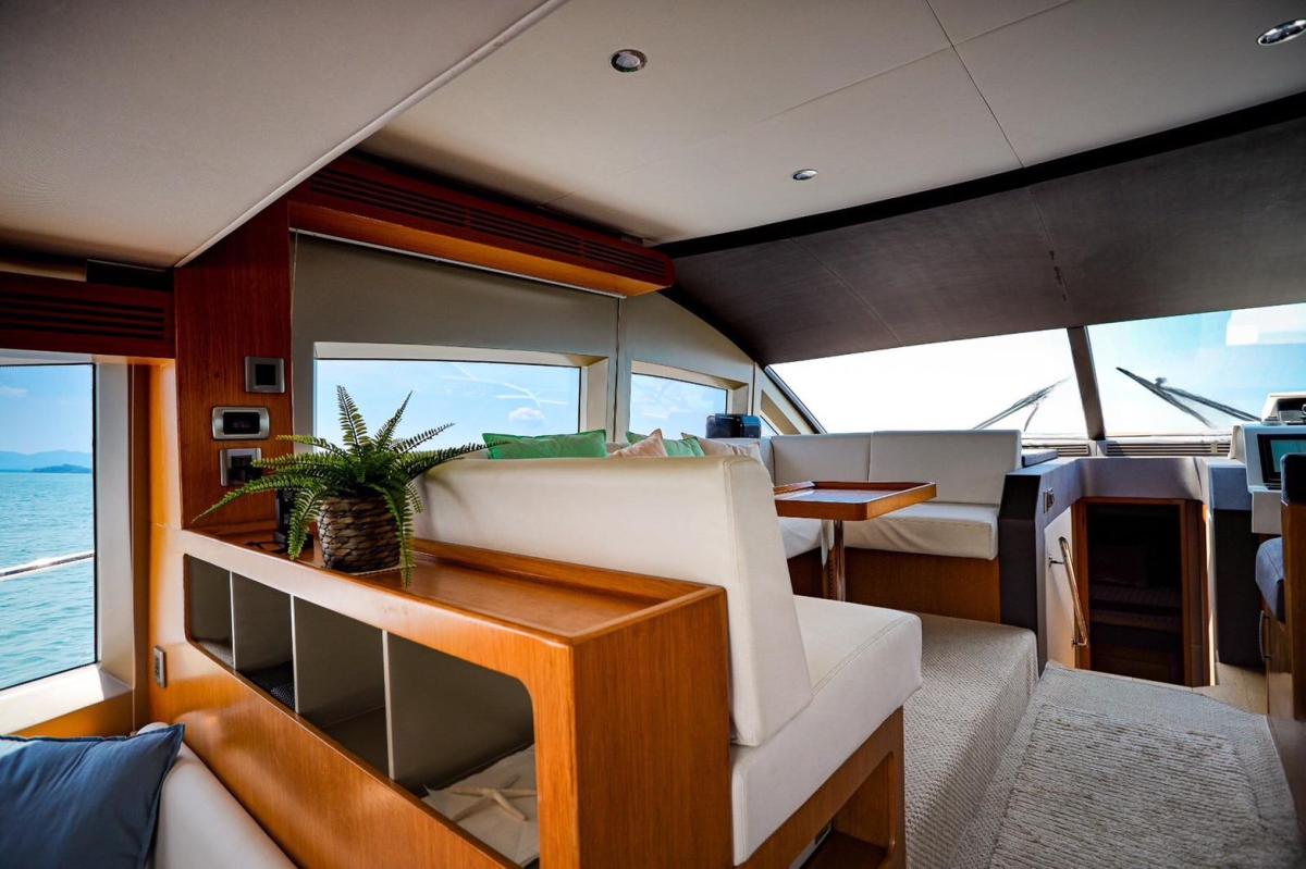 The Majesty 48 stands out with its eye-catching exterior design, setting it apart from other yachts in its class. Its fresh, contemporary interior, social cockpit area, and spacious flybridge make it an ideal choice for owner-management, appealing especially to first-time yacht buyers by anticipating and accommodating their needs.