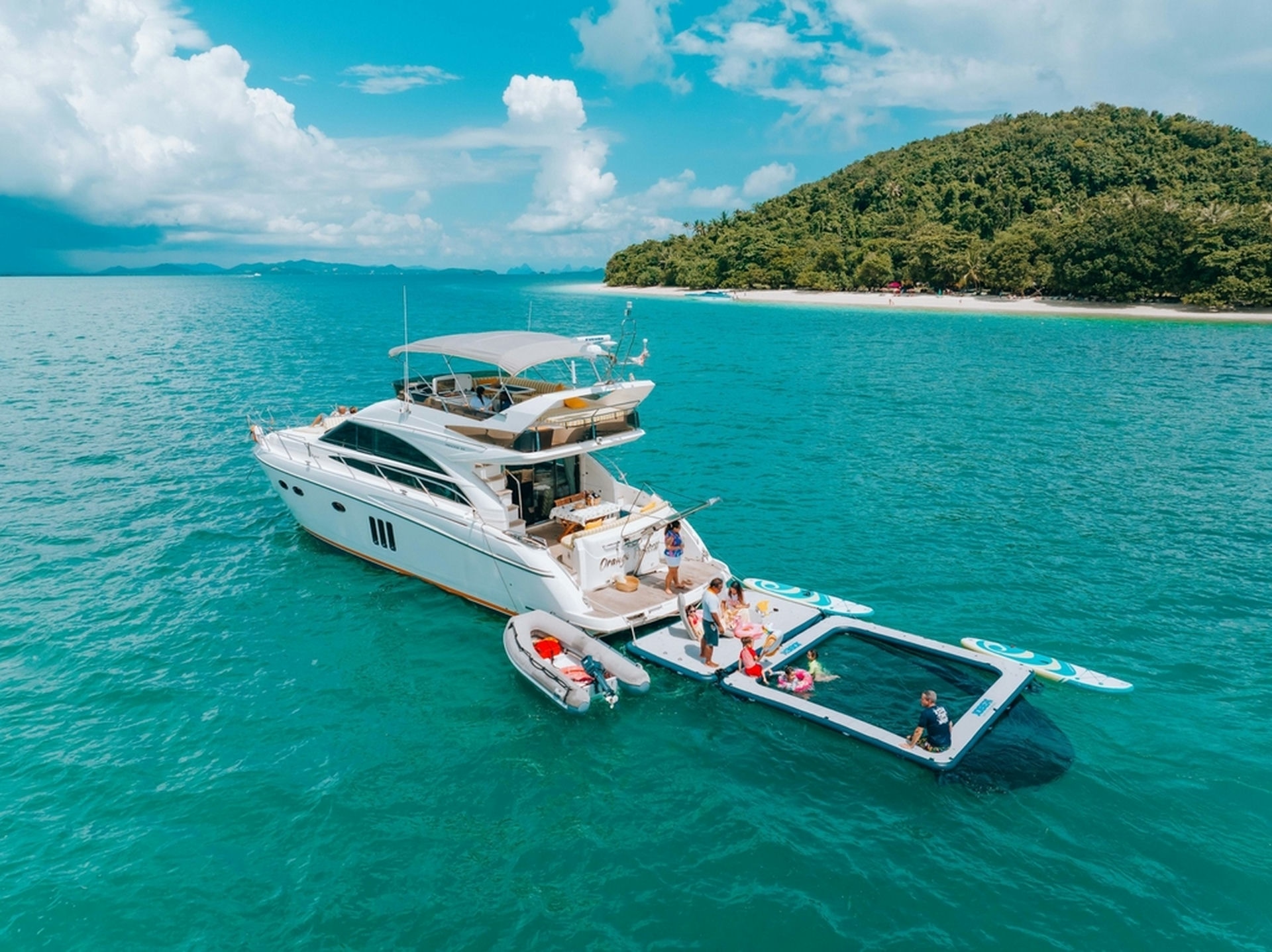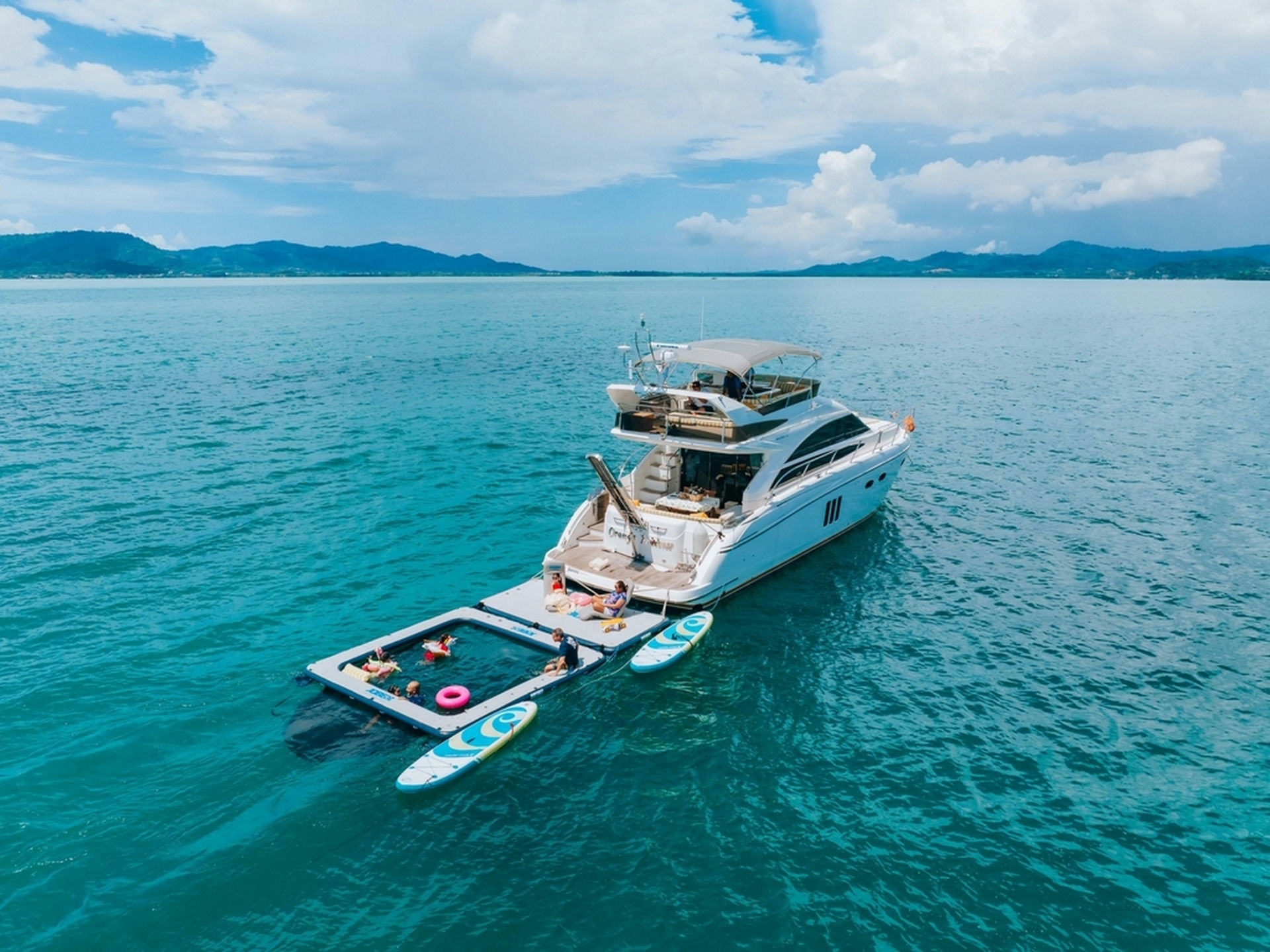 The Princess 54 motor yacht, while smaller than the Princess 78, still delivers exceptional luxury and practicality, making it an ideal choice for charters around Phuket and nearby islands. Despite its compact size, the Princess 54 boasts high-quality materials, including fine woodwork, luxurious fabrics, and modern fixtures, creating a sophisticated and comfortable ambiance. With a sleek, stylish exterior, this yacht is equally suited for both casual gatherings and formal occasions.