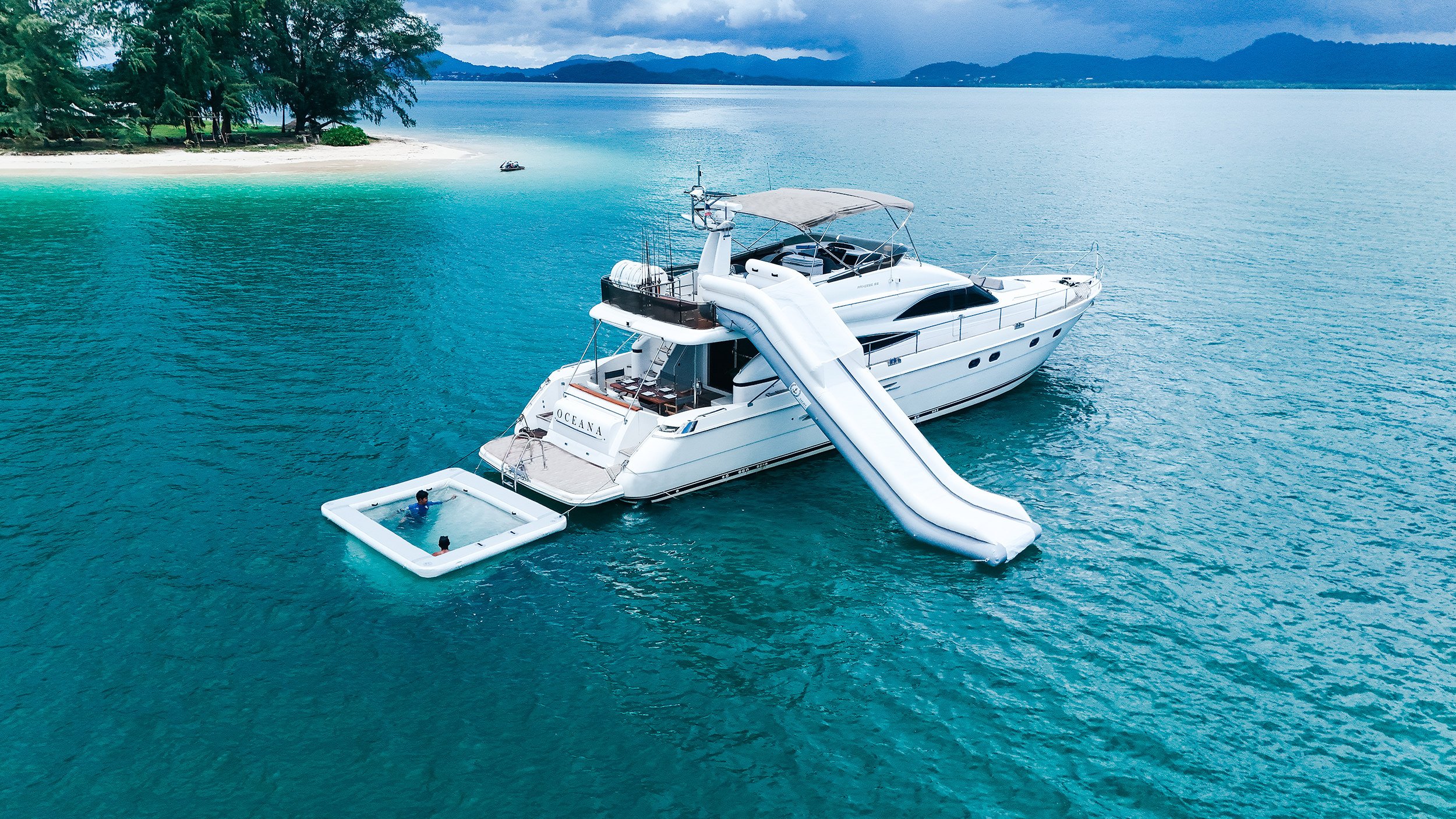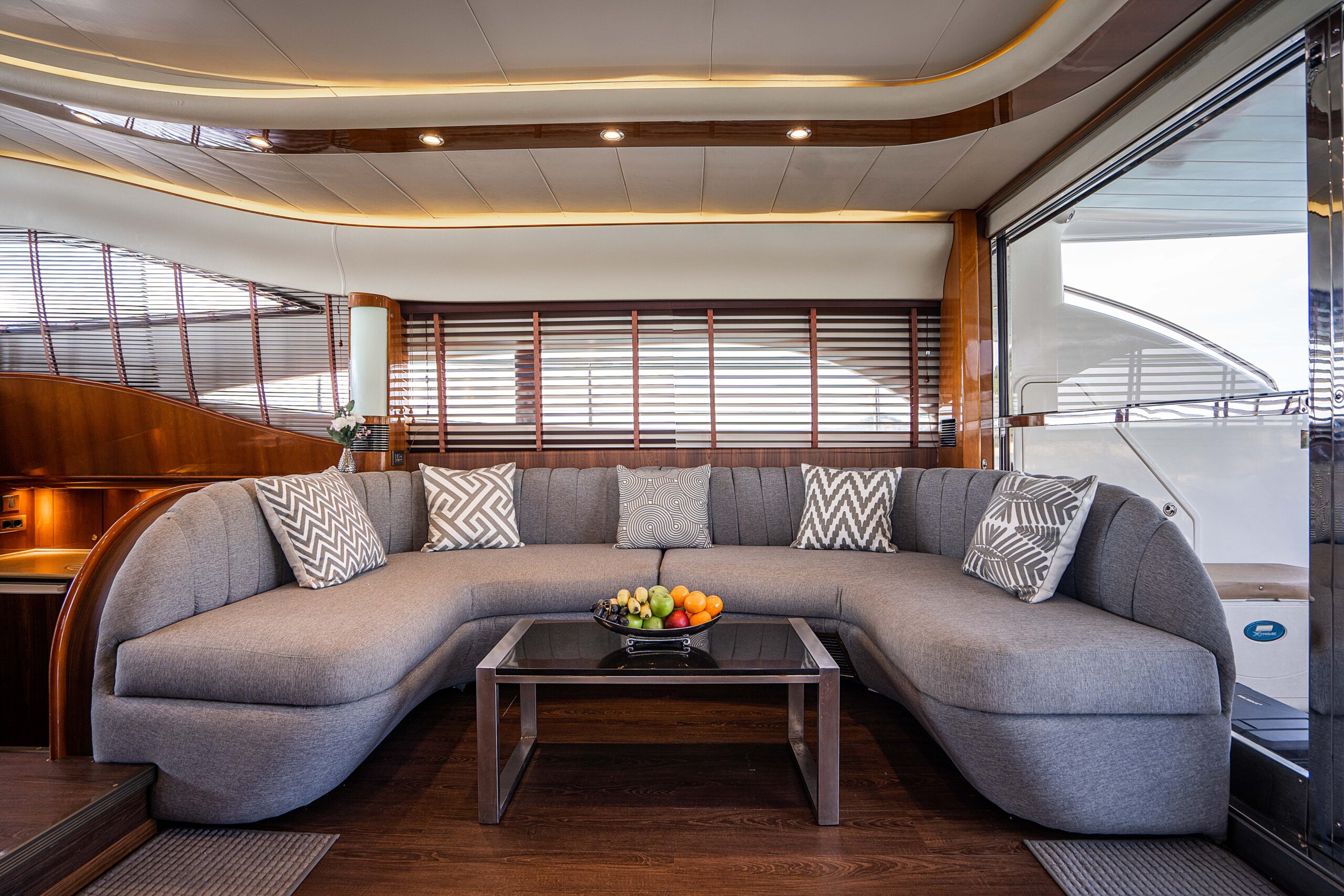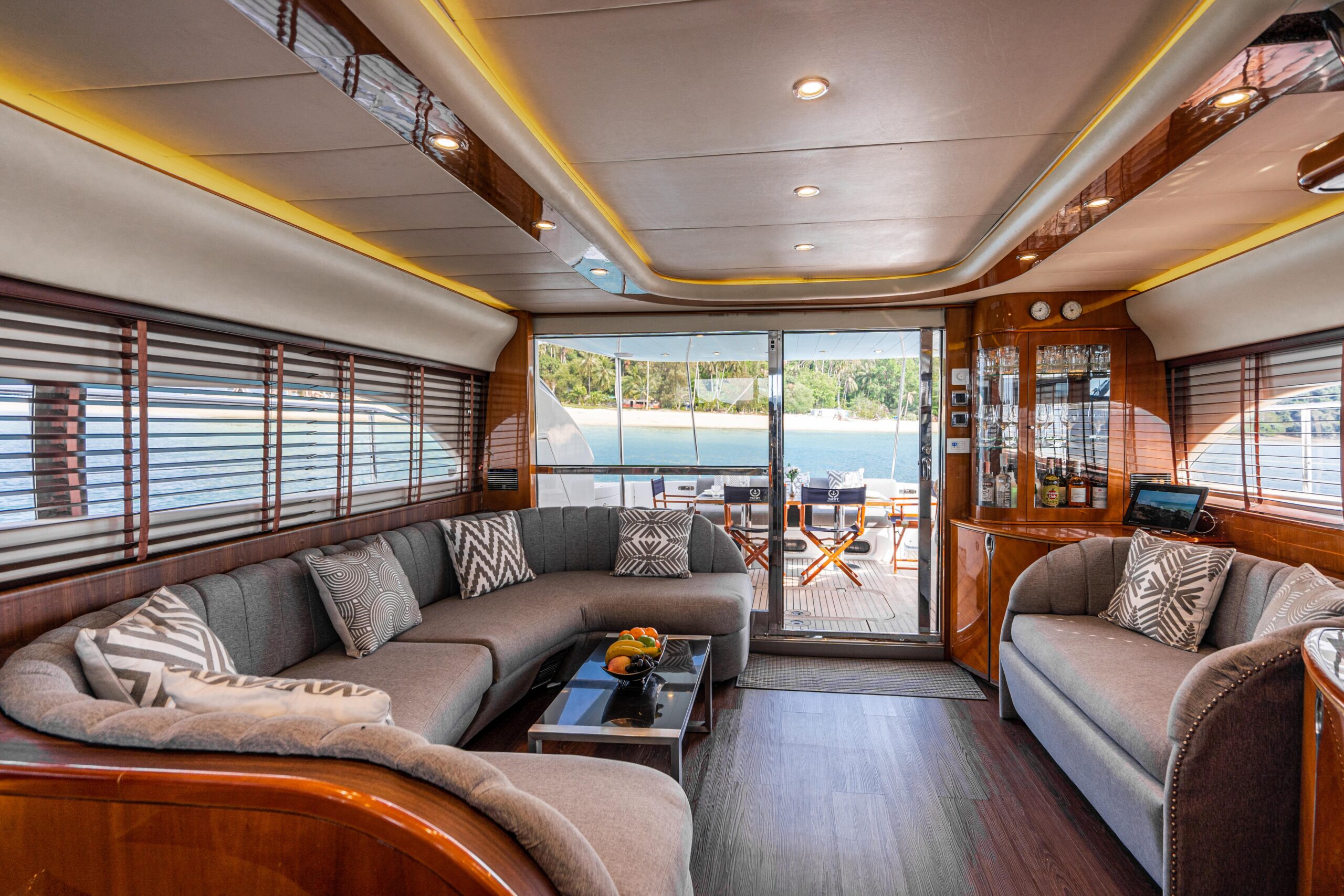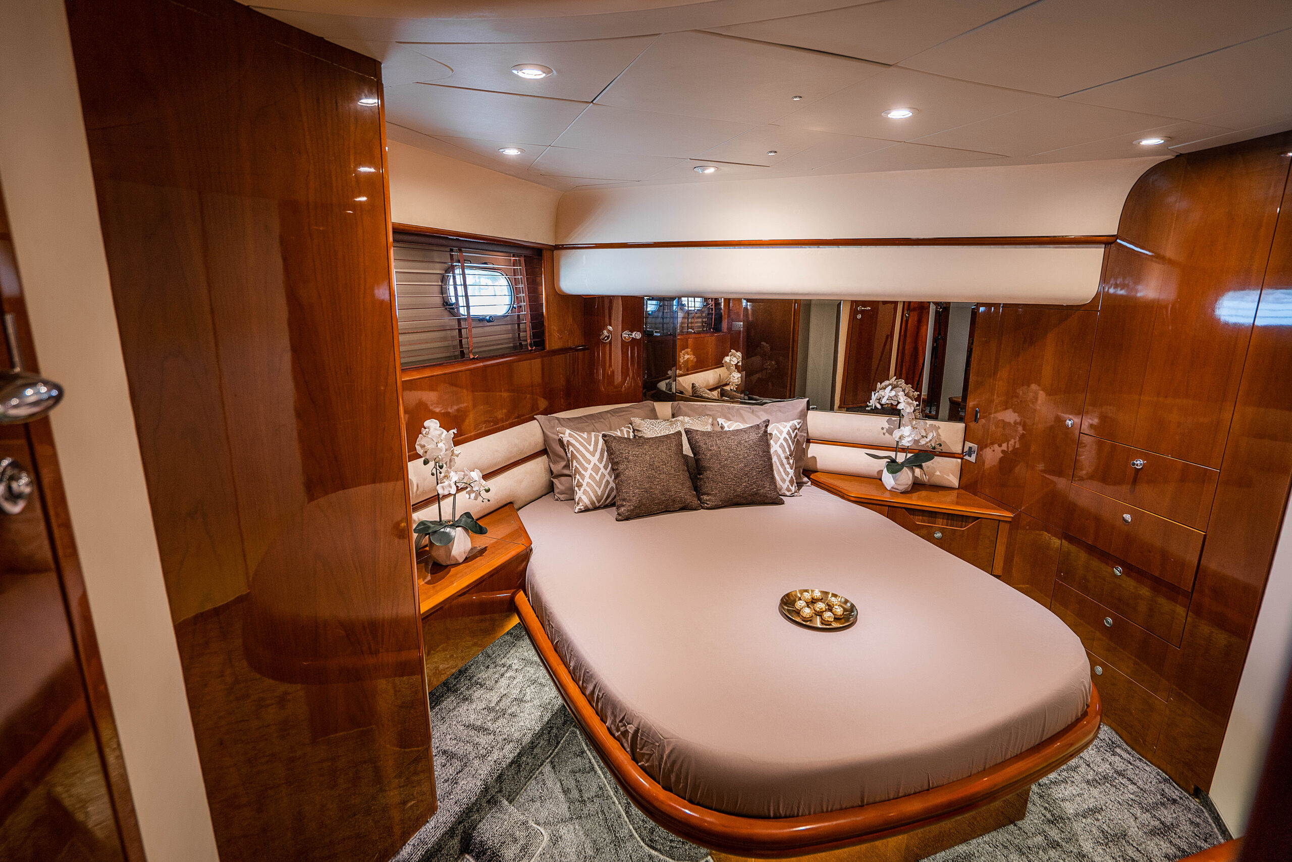 The vast flybridge provides the perfect spot to unwind while cruising to stunning destinations, with a large table and generous seating that create an ideal setting for alfresco dining. With superior equipment and luxurious comfort, the Princess Yacht promises an unforgettable experience. Despite her compact size, Oceana is remarkably spacious, featuring three beautifully detailed cabins with en-suite bathrooms on the lower deck, plus a twin cabin with bunk beds.