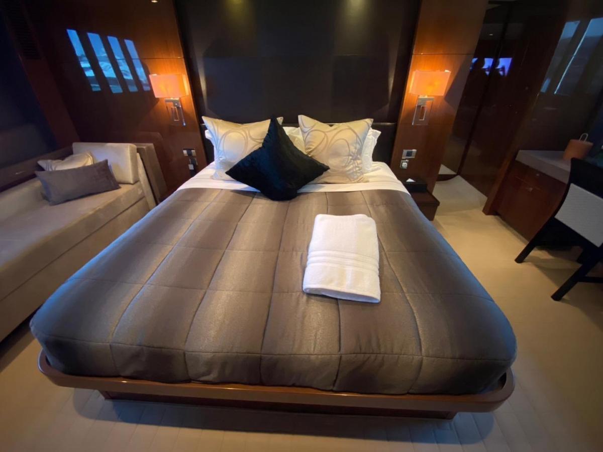 Inside, the yacht features a spacious, light-filled, and meticulously detailed interior. An elegant saloon flows into a formal dining area, adjacent to the galley, which can be fully opened to foster a social atmosphere or closed off with a powered bulkhead for added privacy. Thoughtful design includes discrete crew access, with side doors leading to the galley and helm, ensuring both functionality and sophistication in every detail.