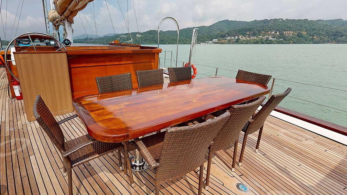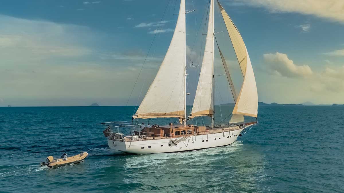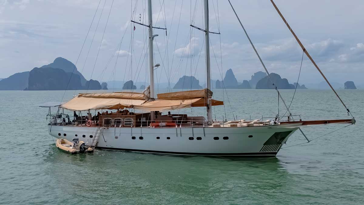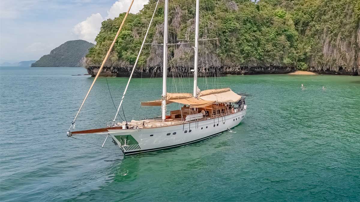The Born Free 90ft sailing yacht, available for charter in Phuket, offers a luxurious experience with three elegantly appointed cabins and a capacity for up to 16 guests. Perfect for those seeking comfort and style, Born Free 90ft features spacious cabins with high-quality wood finishes, air conditioning, a premium audio system, and a professional crew, including attentive stewards, to ensure a seamless experience.