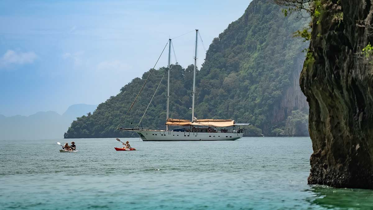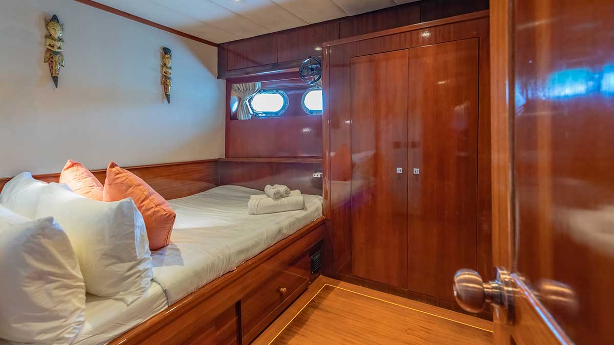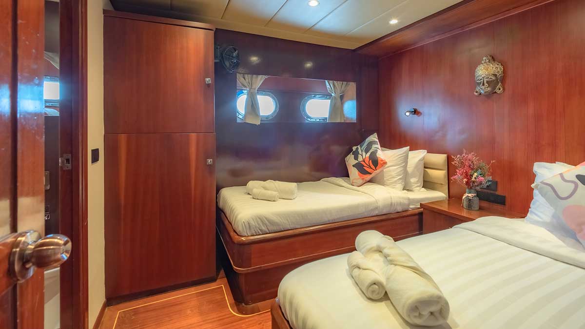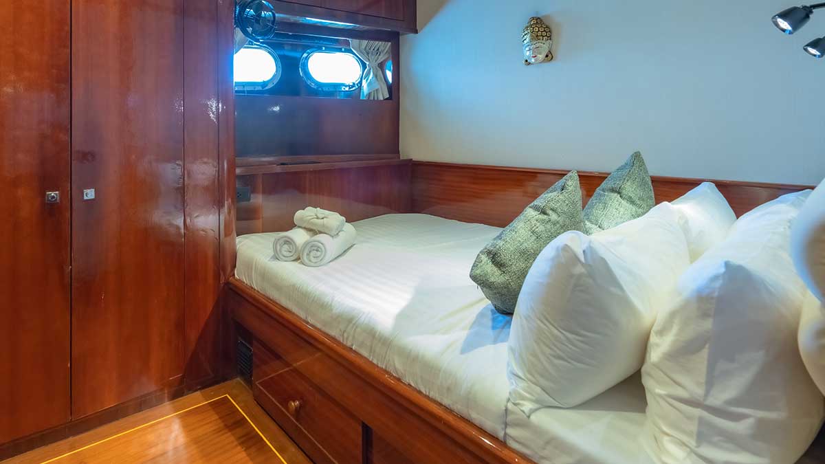 Ideal for both day charters and extended cruises, this yacht offers a perfect balance of size, luxury, and value. With three comfortable cabins, Born Free 90ft is well-suited for longer voyages, making it an exceptional choice for exploring Phuket’s stunning seascape.