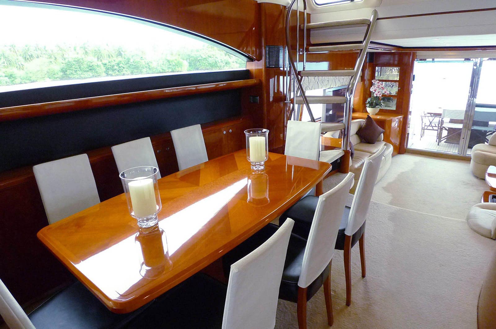The Sanook Princess 23m is the flagship model from Princess Yachts, crafted in the UK, and stands as one of the most luxurious cruising yachts in Southeast Asia. Combining timeless design, superior quality, performance, and luxury, this 23-meter yacht delivers an unparalleled experience. The Sanook boasts an elegant, bright interior with a spacious open-plan saloon that opens onto the rear deck for casual dining, along with a separate formal dining area indoors.