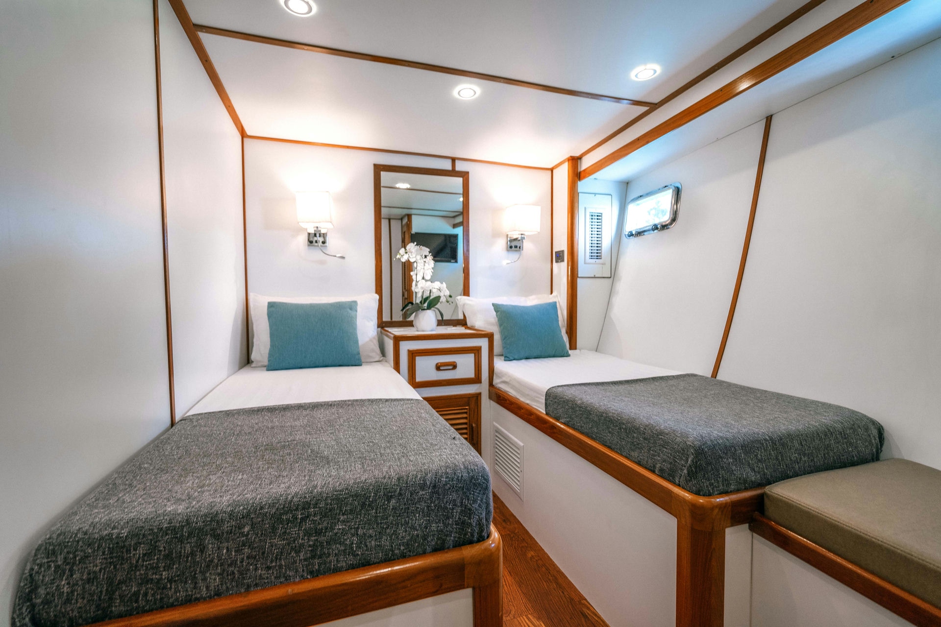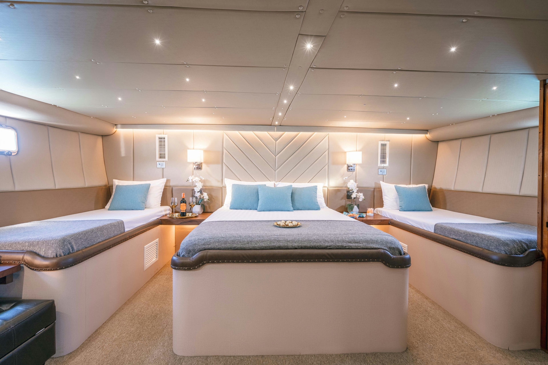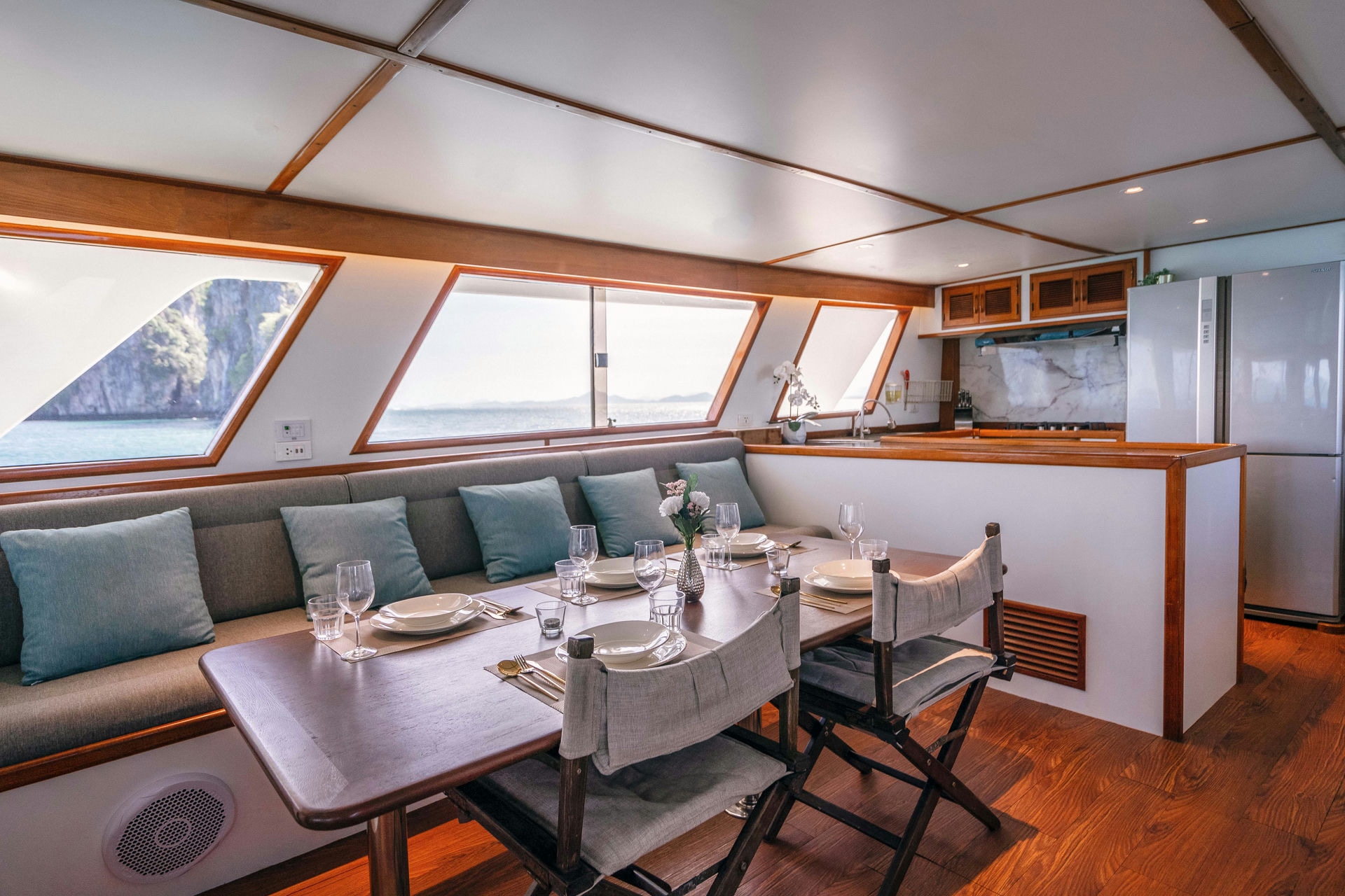 With four spacious cabins, the Siam Princess comfortably accommodates up to 12 guests, offering ample living space. Customize your journey to explore hidden islands, dive into Thailand’s sparkling waters, enjoy exclusive onboard dining, or unwind with sunset yoga on pristine sandy beaches.