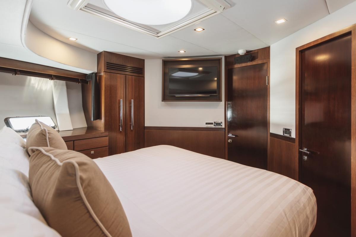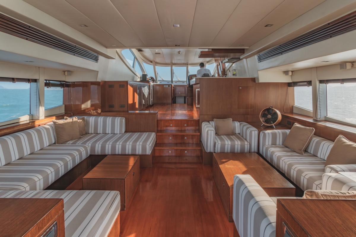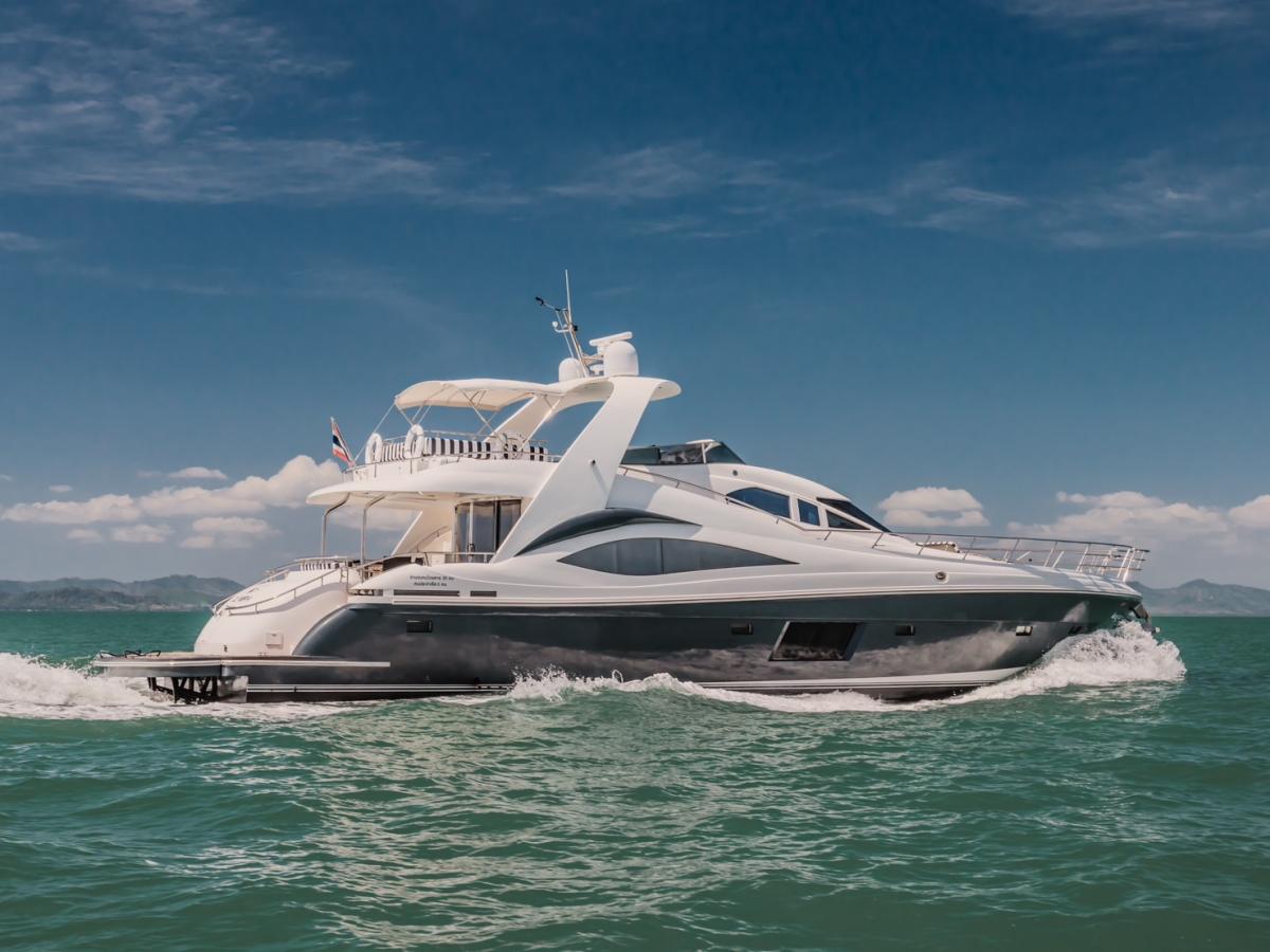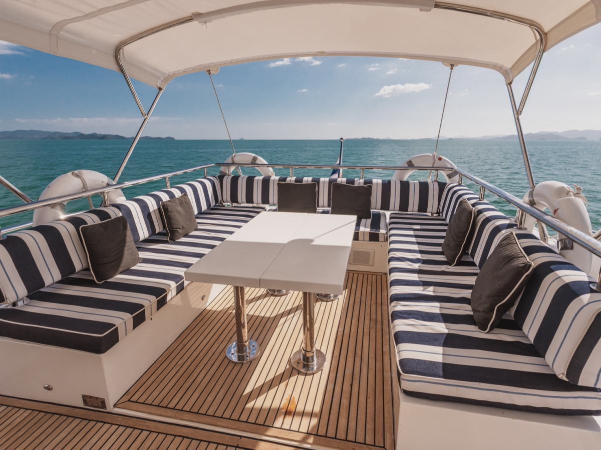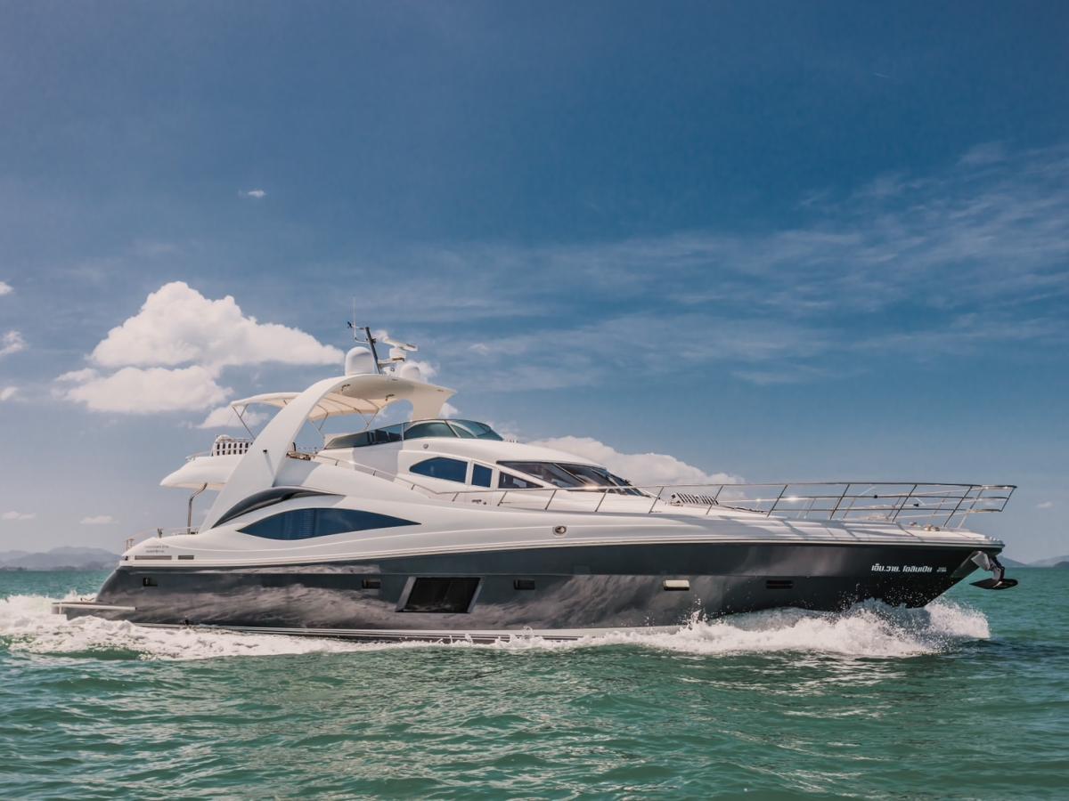 For private motor yacht rentals in Phuket, this spacious 76ft flybridge yacht is an excellent choice. Whether you’re taking a day trip to explore the stunning scenery of Phang Nga and Krabi national parks, or enjoying snorkeling and wakeboarding in the crystal-clear waters of the famous Phi Phi Islands, this yacht offers an unforgettable experience. The flybridge provides ample outdoor seating, perfect for unwinding and enjoying Thailand’s breathtaking seascapes.